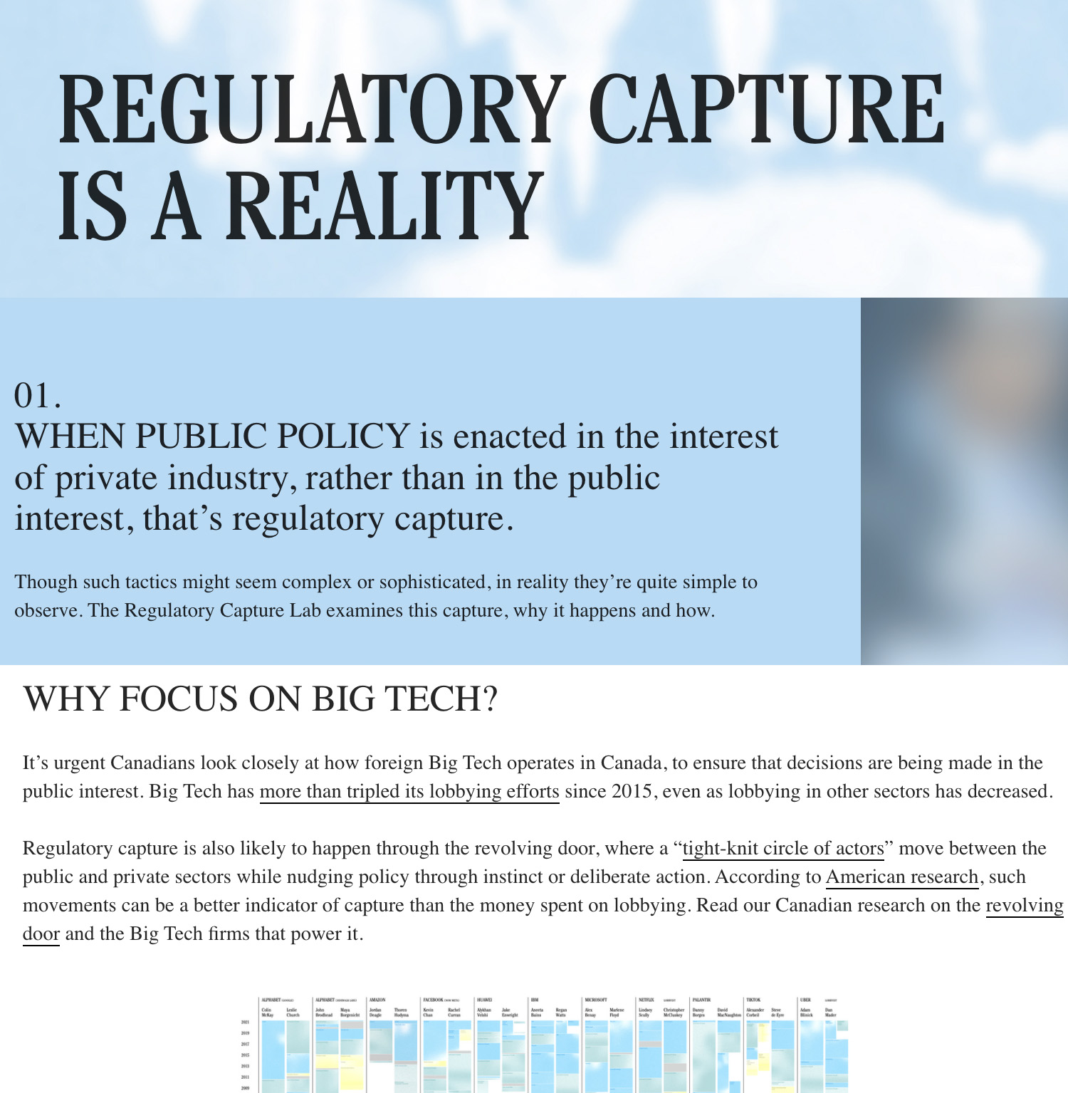 —website concept and editorial for launch of Regulatory Capture Lab’s new website and research portal, in collaboration with Michèle Champagne, the Centre for Digital Rights, and McMaster University’s Master of Public Policy in Digital Society program.